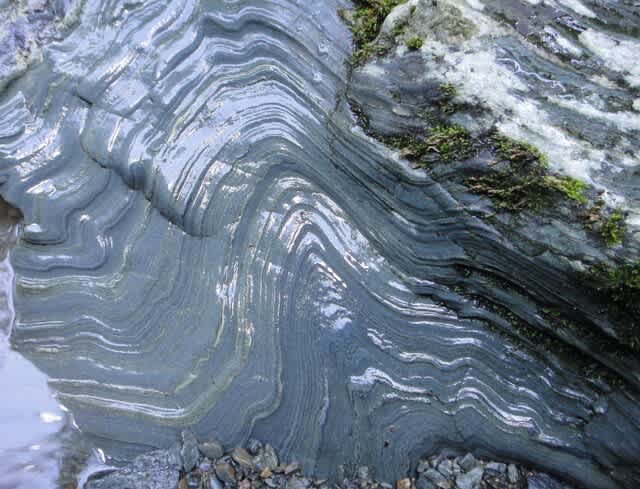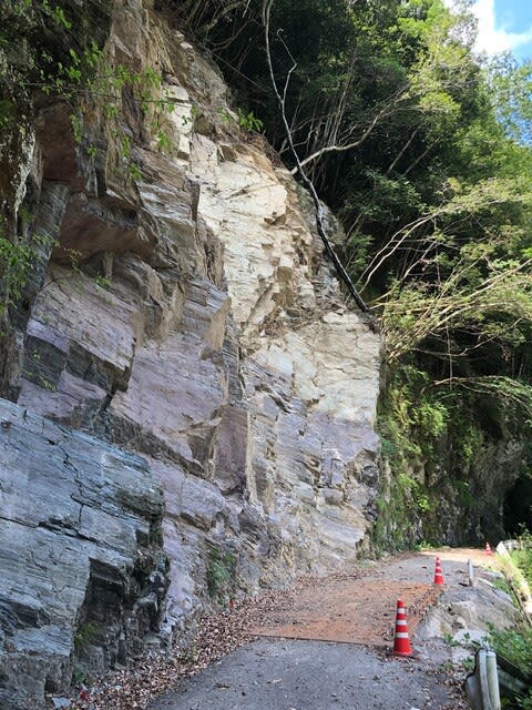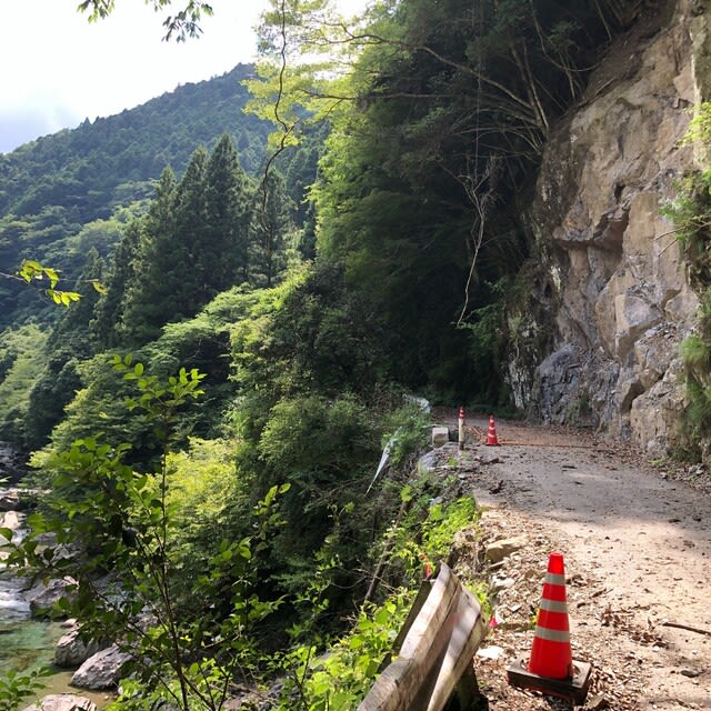谷が左に大きく屈曲し、崩壊地をこえてしばらくすると