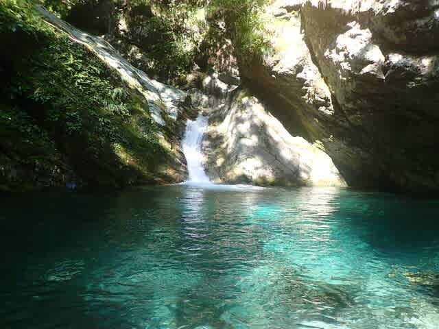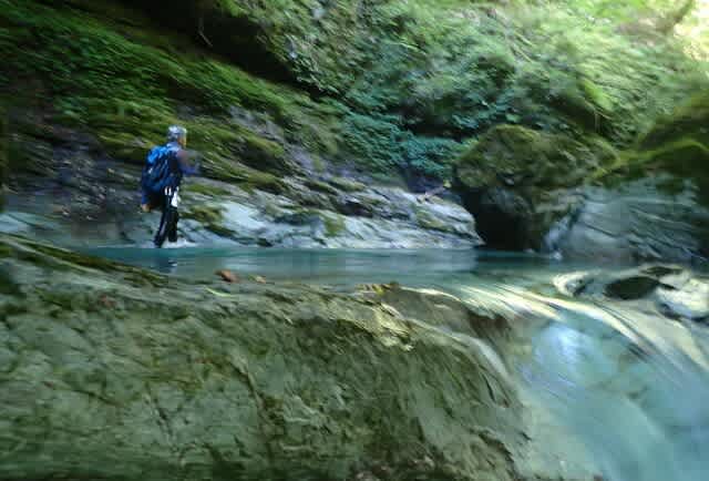 ゴルジュの入口は水量もひかえめでおだやかだった