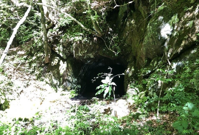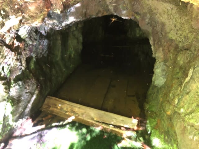 左岸石積みからすぐの斜面に坑口らしきものを発見する