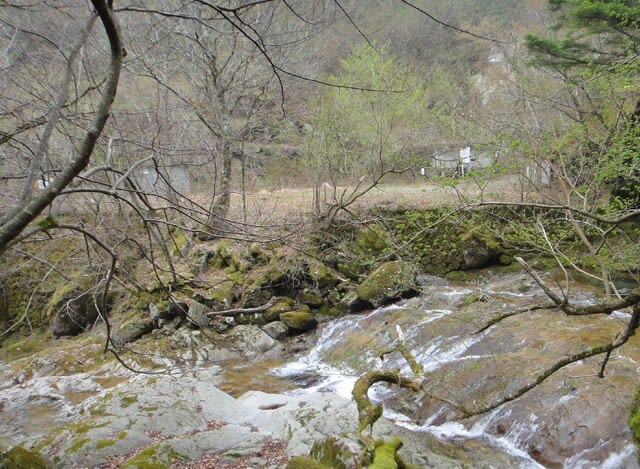 雪で埋まったルンゼを数本トラバースして愛大小屋